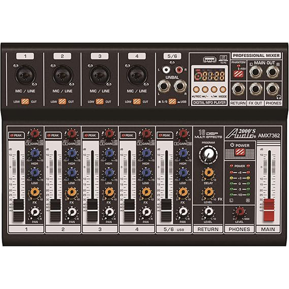- 6-Channel Audio Mixer with USB 5V Power Supply Input